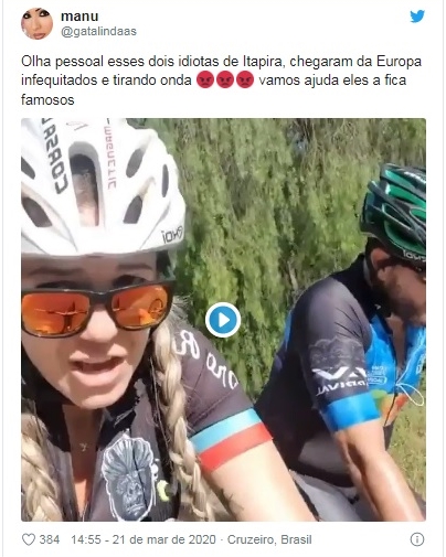 Um dos vídeos, o casal aparece pedalando em uma estrada rural da cidade, falam que estão infectados com o vírus e reclamam da reação das pessoas.