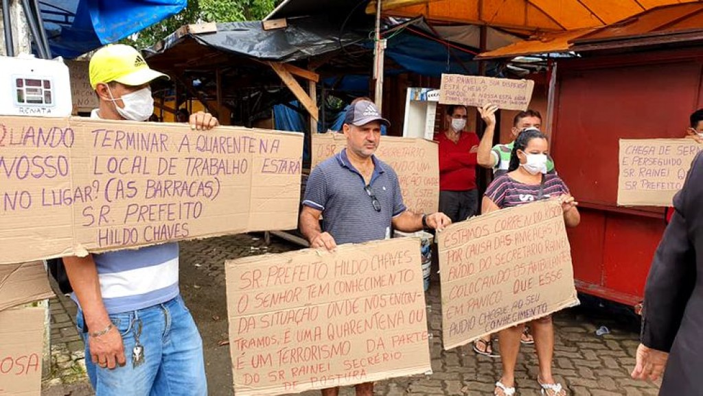 De acordo com os manifestantes, eles teriam recebido uma ameaça de que as barracas, por estão fechadas por conta de Decreto Estadual, seriam retirada pelo Departamento de Postura do Município.